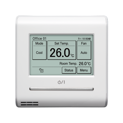 Особенности и преимущества: сенсорный экран с подсветкой; русифицированный интерфейс для удобства пользователей; встроенные таймеры (ежедневный и недельный); функции энергосбережения; индивидуальное управление жалюзи (для кассетных моделей); возможность настройки резервирования и ротации блоков; поддержка группового управления.
