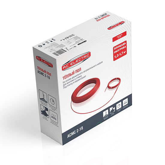 двужильный, в стяжку, степень защиты: IP68, сечение кабеля 1,2 мм, отапливаемая площадь 2,7 кв. м, приведенная потребляемая мощность 0,25 Вт